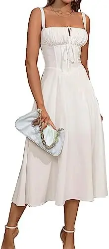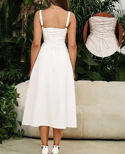 Women's Floral Midi Corset Dress 100% Cotton Chiffon Spaghetti Strap Lace Flowy Slit Natural Waist Breathable Wedding Tea Party